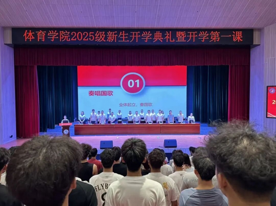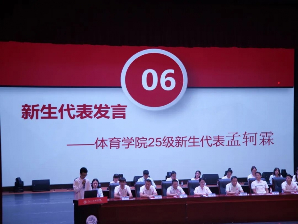 在体育学院2025级新生开学典礼上,院长携全体师生迎接了来自多省份的311名新生,学院将以“文明其精神,野蛮其体魄”为理念,同时对新生提出“厚德、笃行、求真、创造”的校训要求,第一,以“厚德”为基,恪守体育道德;第二,以“笃行”为要,拒绝“躺平”,敢于“奔跑”;第三,以“求真”为志,保持好奇,勇于发问。第四,以“创造”为擎,敢于想象,敢于不同。承诺学院及教师会为新生提供支持,并祝愿他们学有所成、拥有强健身体与自由灵魂。