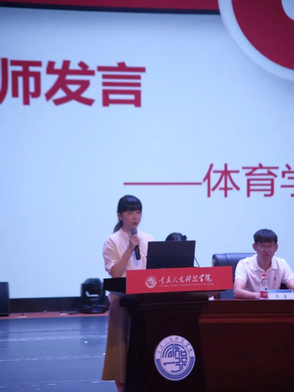 教师代表洪莉薇老师随后发言,她以谆谆教诲传递对新生的殷切期望,彰显了体育学院教师团队的责任与担当,同时呼吁全体教师“爱生如爱子”,助力学生成长成才。