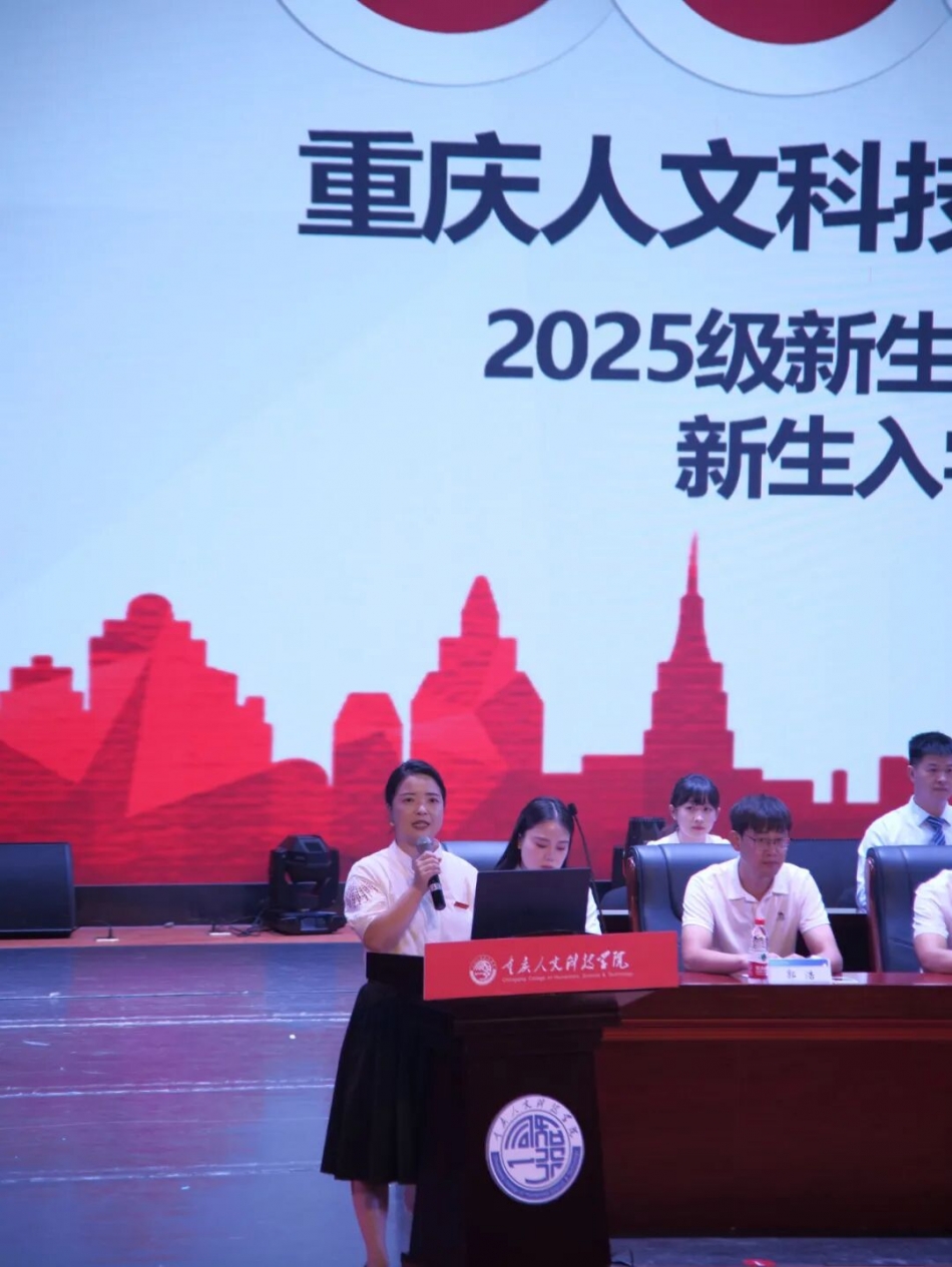 2025年9月11日下午14:30,重庆人文科技学院体育学院2025级新生开学典礼在行知艺术中心隆重举行。典礼由学院党总支副书记黄微主持,院长兼党总支书记肖宇翔教授携学院领导班子、各教研室主任、新生辅导员、班主任及导航学长出席,与2025级全体新生共同见证这一重要时刻,开启大学新征程。