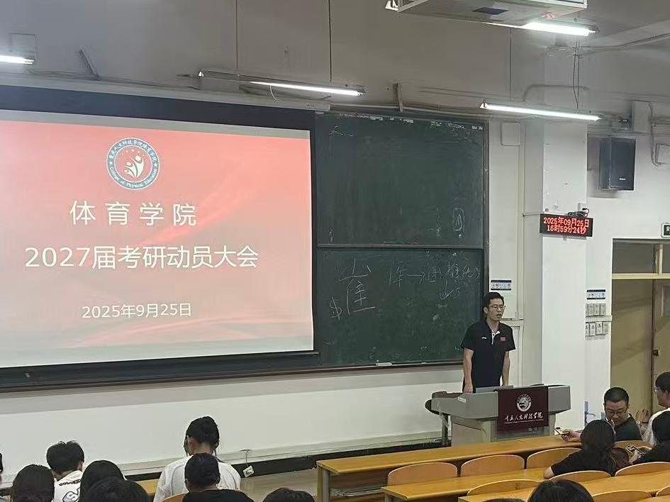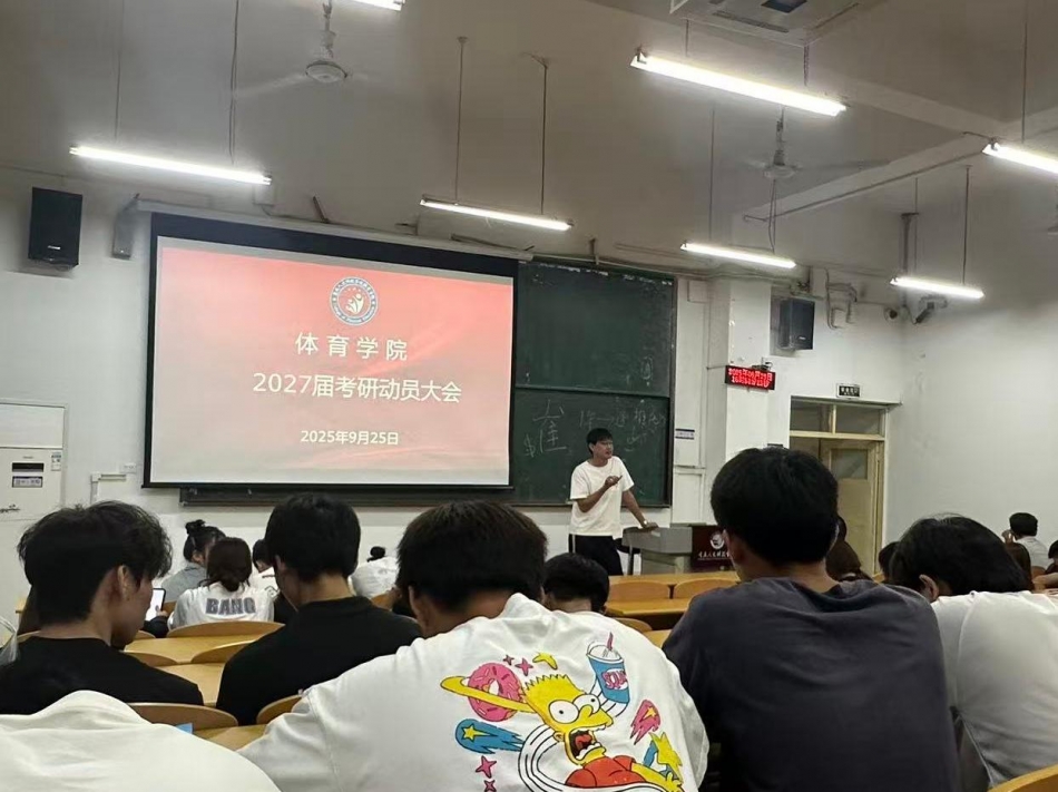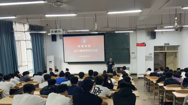 9月25日,为帮助2027届学子明确考研目标、掌握备考方法,体育学院召开了动员大会。大会由学院教师程林主讲,2027届考研班主任徐明杰、郭浩及2023级全体学生参会。