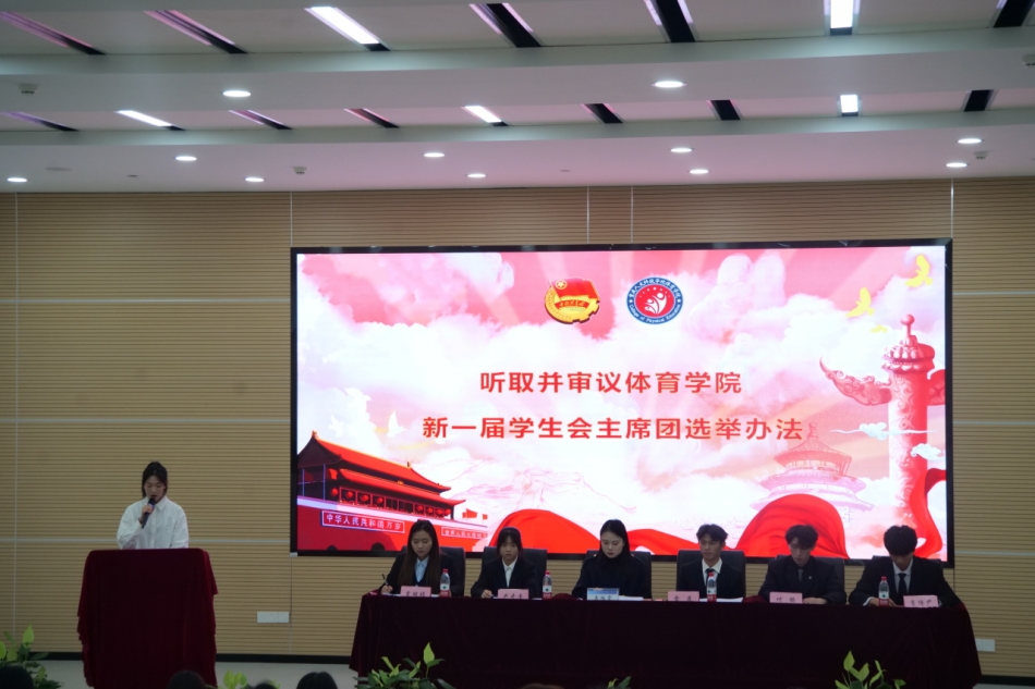 经现场无记名投票、公开计票与监票程序,最终选举产生由付扬、严开青、肖博尹组成的体育学院第五届学生会主席团。整个选举过程公开、公正,程序严谨规范。