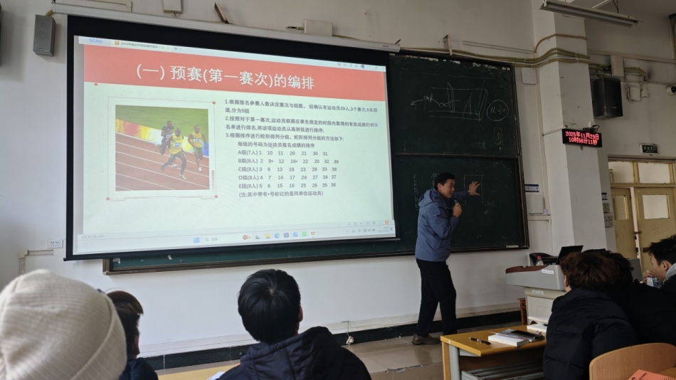 为夯实体育专业学生理论基础,提升赛事组织与实践应用能力,2025年11月28日至29日,体育学院特邀四位资深田径裁判专家,在学院5101教室开展为期两天的专项技能提升课程。