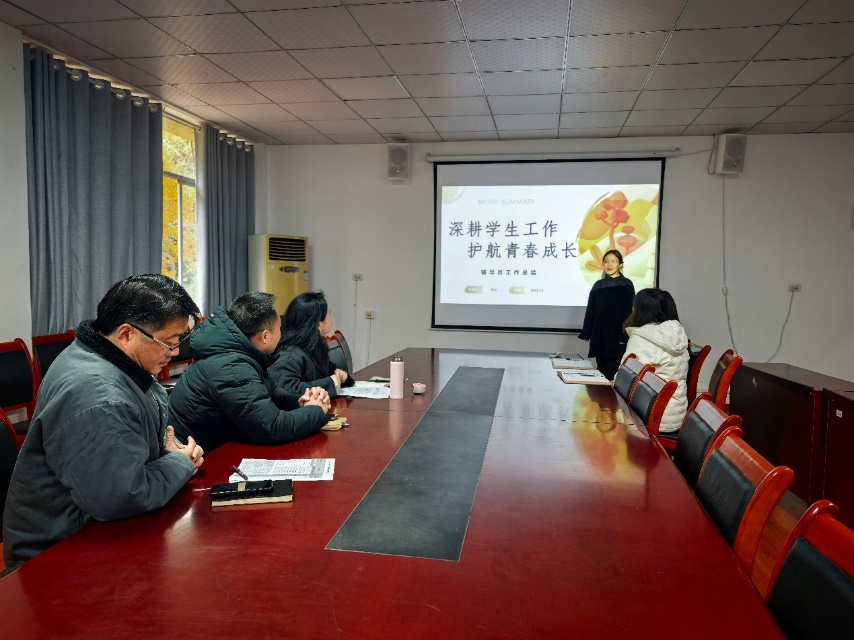 会上,学院党总支副书记黄微首先从整体层面汇报了年度学生工作的开展情况,系统梳理了思政引领、日常管理、学风建设等方面的举措与成果,明确了今后学生工作的整体思路与发展方向。