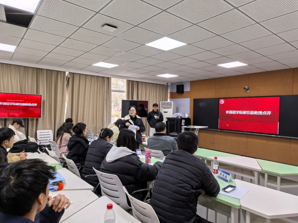 展示环节结束后,外国语学院谢怡副教授对选手表现进行专业点评。她从发音技巧、情感传递、节奏把控等多方面展开剖析,点评简洁深入、切中关键,并为选手提出具体可行的提升建议。现场师生认真聆听,谢教授的分享为大赛增添了浓厚的学术氛围,令参赛者获益良多。