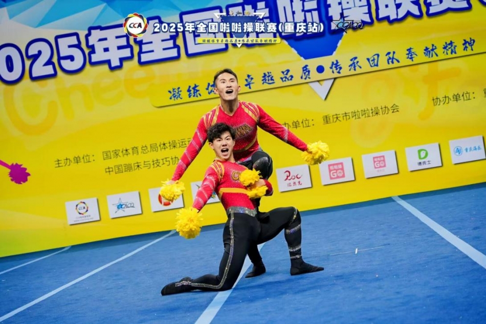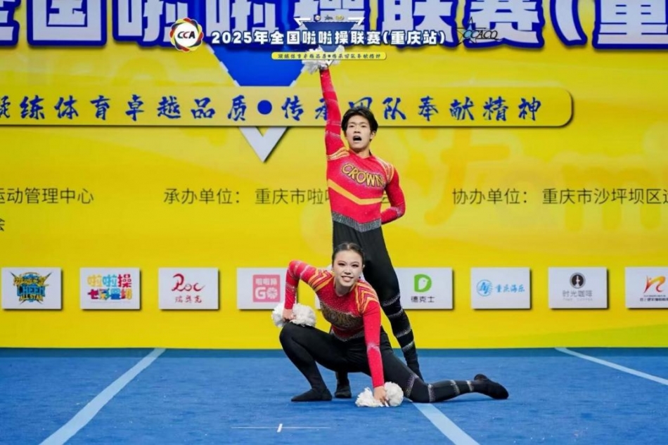 重庆人文科技学院此次由沈思莹、张晓芳两位指导老师带队,集结50多名核心队员出征赛事,涵盖花球、街舞、自编、双人多个项目组别。赛场上,队员们凝心聚力、奋勇争先,以精准利落的动作编排、默契十足的团队协作与朝气蓬勃的精神面貌,完美诠释了啦啦操运动的活力与魅力,充分展现了重人科学子的青春风采。